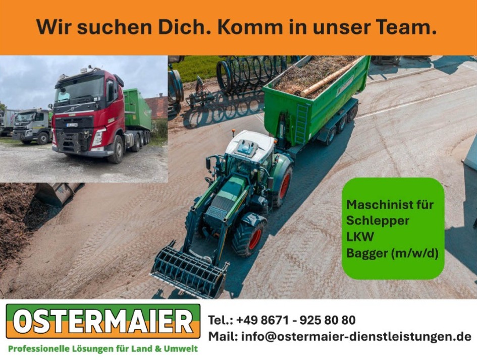 Bedienung und Wartung moderner Maschinen für Grüngutverwertung, Baufeldrodung, Transport, oder landwirtschaftliche Arbeiten